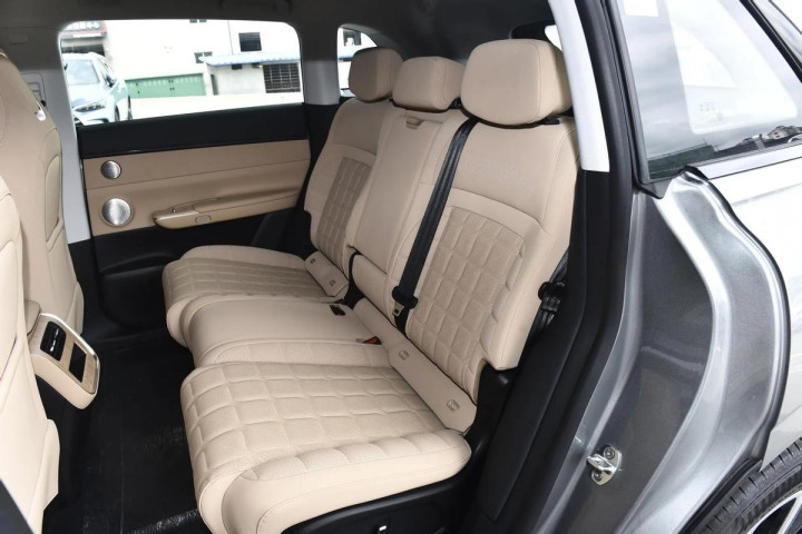 空间方面,星纪元ET拥有长宽高4955x1975x1698mm,轴距是3000mm,内部为5座布局。在实际体验中,即便是在第二排也能轻松享受到充裕的腿部空间。除此之外,高配车型还提供了第二排座椅加热功能,加上精致的方格压纹工艺以及适度的座椅填充物,乘坐起来相当舒适。坐进主驾驶位置后头顶空间还可以剩余一拳两指;来到第二排乘坐后,我的头顶还能剩下一拳一指,腿部空间则超过了两拳。