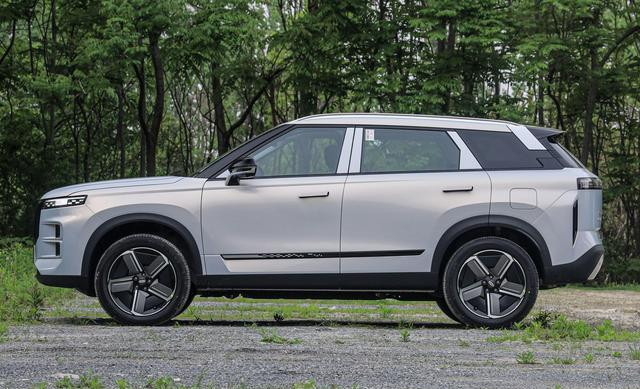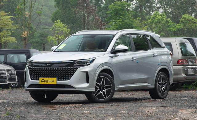 此车面向中老年,外观低调。主打同价位大空间及油电续航,为中型SUV,轴距2785mm,有5座和7座版,7座版二排可调,空间灵活,后排放倒后储物空间达1432L。