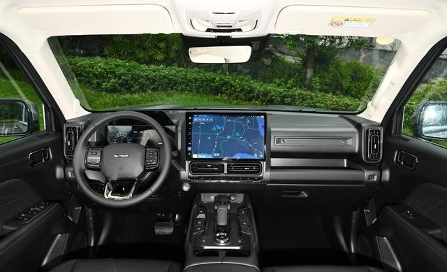 内饰融合越野风格与科技元素,含12.3寸液晶仪表、14.6寸触控屏及Coffee OS系统,配备50W无线快充、360度全景影像等,支持多驾驶模式切换。